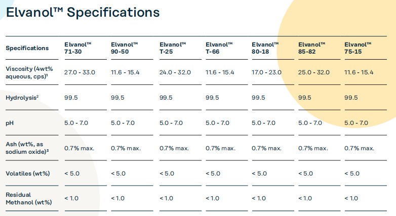 Elvanol series of PVA (such as Elvanol 75-15 Polyvinyl Alcohol) , through optimization of molecular structure and viscosity grades, allows different models to precisely match the above requirements.