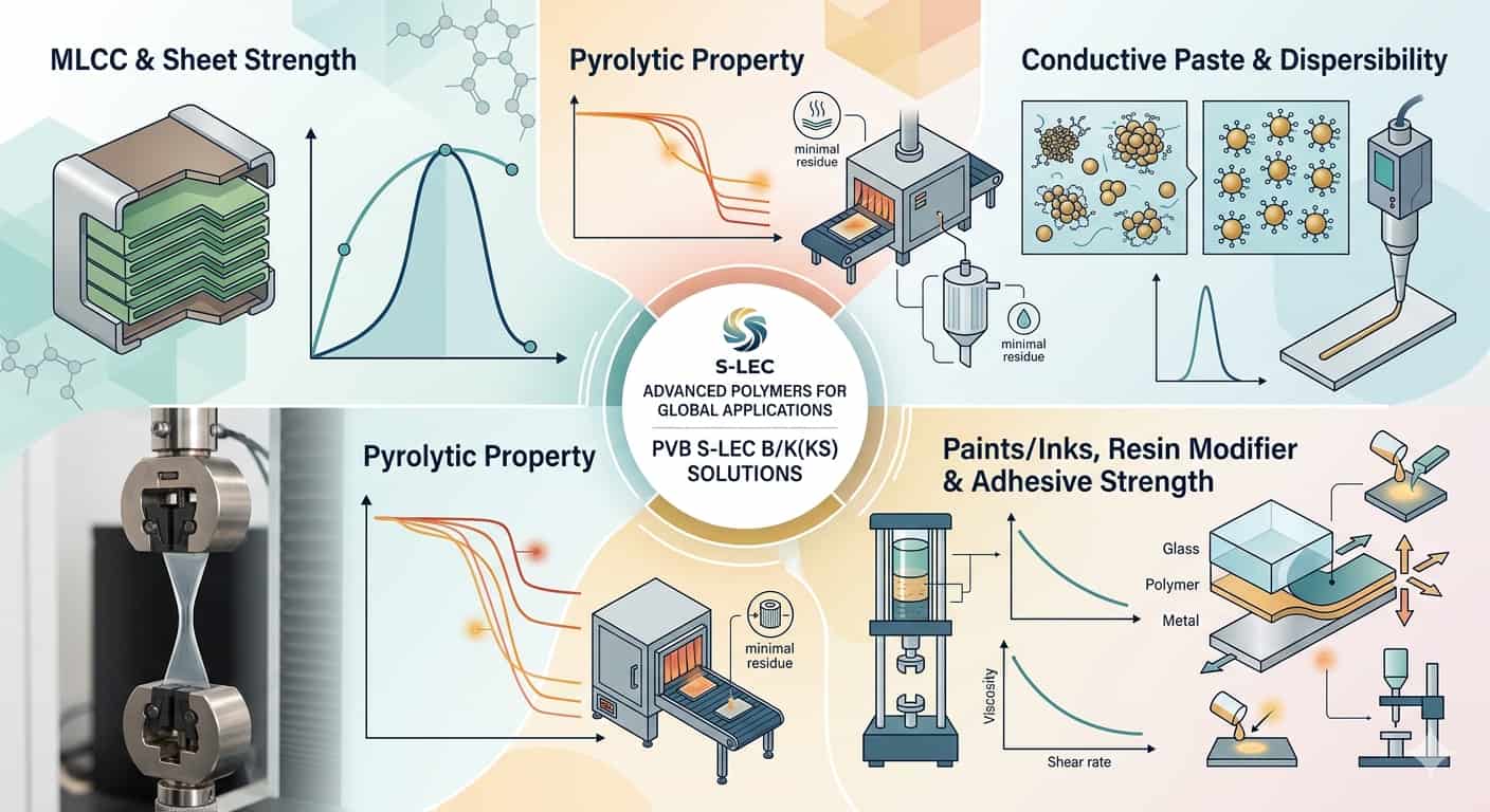 S-LEC Polyvinyl Butyral(PVB) resin series has emerged as a core material in the fields of electronic components, functional coatings, and adhesives, thanks to its exceptional physicochemical stability. Tailored to meet diverse industrial requirements, S-LEC demonstrates the following four key technical characteristics: